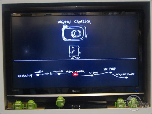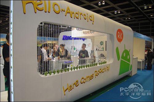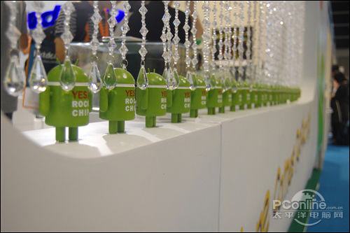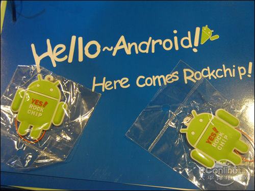 The lead of the Rockchip's whole exhibition stand has no doubt to be the Android Robot.Intelligence is based on human beings .The charming of Android is the free-cost open source and the quick opening.In order to express appreciation for the customers,Rockchip prepareed lavish gifts,such as the T-shirt made of pure cotton,and the Android key ring.