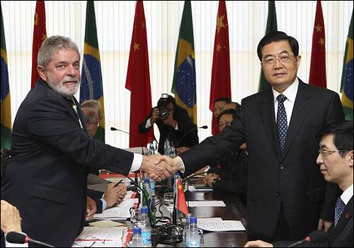 2010,April 14th to 15th ,invited by the president of  Federative Republic of Brazil Luiz Inácio Lula da Silva ,President Hu Jintao paid a state visit to Brazil .During the visitation,President Hu Jintao  talded with President Luiz.The two of the state's leaders exchanged their ideas of the bilateral ties and the areas of common interest,as well as the international problems. They spoke highly of this meeting ,and considered the visitation a pushment of the strategic partnership between this two countries.