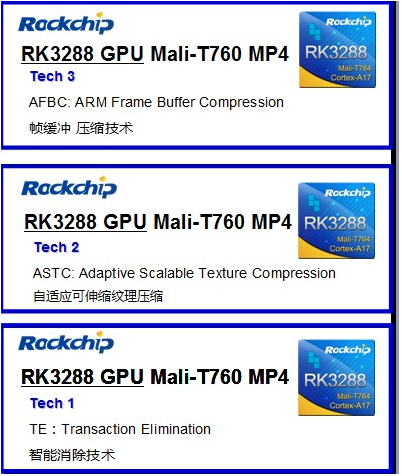 AFBC is abbreviated from “ARM Frame Buffer Compression”. It can provide users with fast and real-time lossless compression and decompression, and maximize the reduction of the data transfer volume between different IP modules within the SoC. While using this technique to decode HD video, the bandwidth required is reduced, this makes the bandwidth decrease by 50%. The reduction of bandwidth required would bring down the power consumption. Therefore, this technique could not only save memory bandwidth but also lower power consumption effectively.